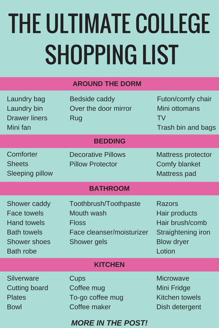 I’ve finally gotten everything organized though, and to help out any other college students getting ready to live the dorm life, I made a master list of everything you could possibly need. Seriously, I went way overboard with this dorm thing. I’m not even sure how I’ll fit everything in it. There are probably a lot of things on here that you already have sitting around your home, so make a list of those things first to avoid double buying!