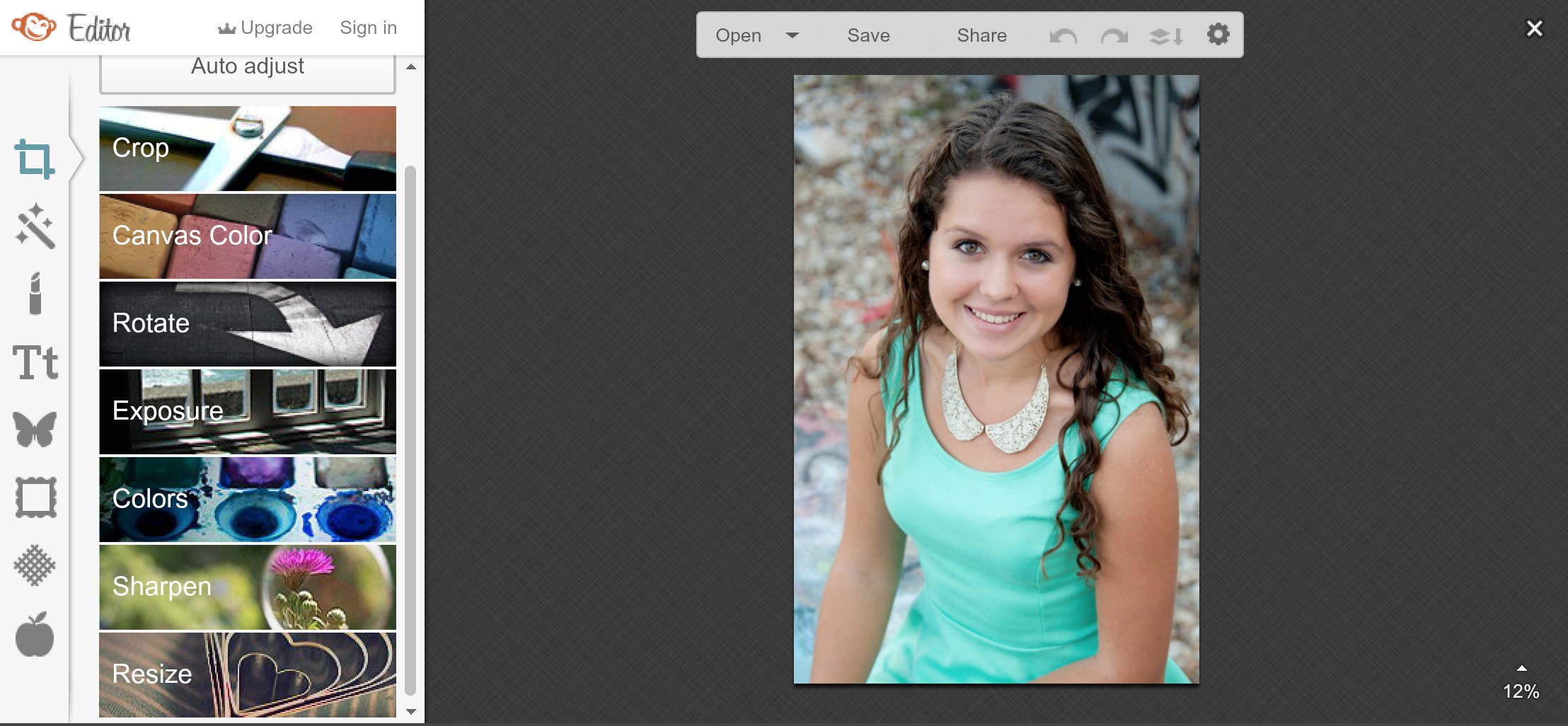 PicMonkey is my go-to website for photo-editing, designs with transparent backgrounds, and any quick edits I need to make. It’s extremely easy to use, and it comes with a lot of pre-made add-ons like filters, frames, and graphics. Here’s a basic summary of its features:
